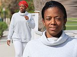 New look: Tessica Brown, 40, appeared carefree as she strolled in Los Angeles on Thursday, a day after a plastic surgeon ended her month-long Gorilla Glue ordeal