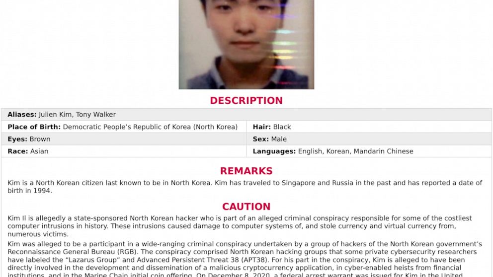 The newly unsealed indictment builds off an earlier criminal case brought in 2018 and adds two additional North Korean defendants. Prosecutors identified all three as members of a North Korean military intelligence agency and said they carried out hacks at the behest of the government with a goal of using stolen funds for the benefit of the regime. Alarmingly to U.S. officials, the defendants worked at times from locations in Russia and China.