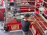 Worawut Lomwanawong, pictured right, was performing a test on the security at his jewellery store in Chang Ma, Thailand, by simulating an armed robbery. He expected his pet Husky, Lucky, lying on the floor on the left of this CCTV image, to challenge the ‘raider’, centre