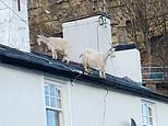 Hoof on the roof! Goats that flocked into deserted Welsh town during lockdown return – and climb on TOP of people’s houses
