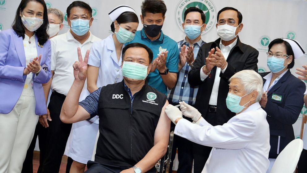BANGKOK — Thailand started its first vaccinations Sunday with 200 public health officials receiving the Sinovac vaccine from China.