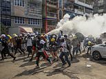 The numbers of demonstrators flooding the streets of cities across the country has remained high even as security forces have repeatedly fired tear gas, rubber bullets and live rounds to disperse the crowds, and arrested protesters en masse. Pictured: Protesters run after police throw tear gas at them in Mandalay on March 3