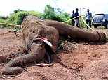 Locals were pictured investigating the scene of the elephant’s death and holding up its tusk, suggesting it had not been killed for its ivory.