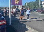 Locals have described waking up in the early hours of the morning to a ‘very long, swaying shake’ and houses making ‘cracking sounds’ (pictured, residents gather on higher ground at Whangarei)
