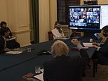 Boris Johnson holds his regular Cabinet meeting by video link in Downing Street last week