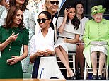 Meghan pictured with sister-in-law Kate watching the tennis at Wimbledon in 2019