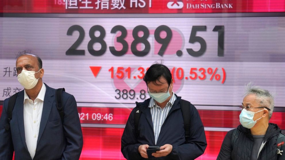 Japan’s benchmark Nikkei 225 added nearly 1.0% to finish at 29,027.94. South Korea’s Kospi slipped 0.7% to 2,976.12. Australia’s S&P/ASX 200 added 0.5% to 6,771.20. Hong Kong’s Hang Seng edged up 0.2% to 28,584.96, while the Shanghai Composite slipped 1.8% to 3,359.26.
