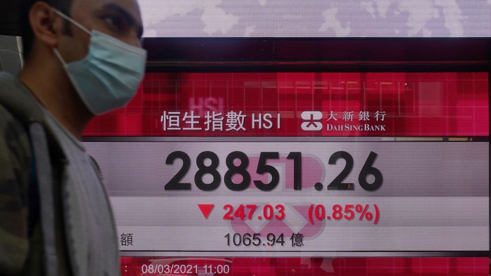 Japan’s benchmark Nikkei 225 added 0.2% to 28,800.81 in morning trading. South Korea’s Kospi slipped 1.2% to 2,960.17. Australia’s S&P/ASX 200 added 0.3% to 6,760.10. Hong Kong’s Hang Seng gained 1.3% to 28,918.99, while the Shanghai Composite slipped 0.6% to 3,402.61.