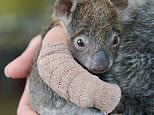 Orphaned five-month-old baby koala gets an arm cast after falling from a tree and breaking its arm
