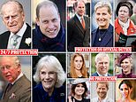 This graphic shows how the Queen, Duke of Edinburgh, Prince Charles, Camilla, Prince William and Kate all get round-the-clock protection - while Princess Anne, Prince Edward and Sophie are guarded only when on official duties and engagements