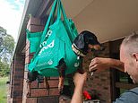 He hung the bag which retails for 99cents from a metal hook on his patio to give him easy access to the pet’s nails.