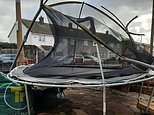 In Thurrock, Essex, a trampoline was swept up and careered through the streets where it almost wiped out a mother and her two young daughters.