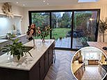 Abbie and Mark fitted a large floor-ceiling window and door leading out onto the garden from their new kitchen (pictured after renovations)