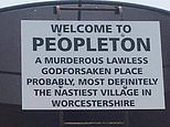 Carl Powell, 75, put the sign up on an old grain dryer and described his village of Peopleton as a ‘murderous, lawless, godforsaken place’.