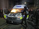 A spokesman for Avon and Somerset Police tweeted: ‘Officers have had projectiles thrown at them, including a firework, and have been verbally abused. This is unacceptable behaviour and those responsible for offences will be identified and brought to justice.’