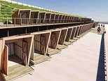 Beachgoers have hit out at modern design plans (pictured) for beach huts at Lowestoft, in Suffolk, claiming they are ‘ghastly’