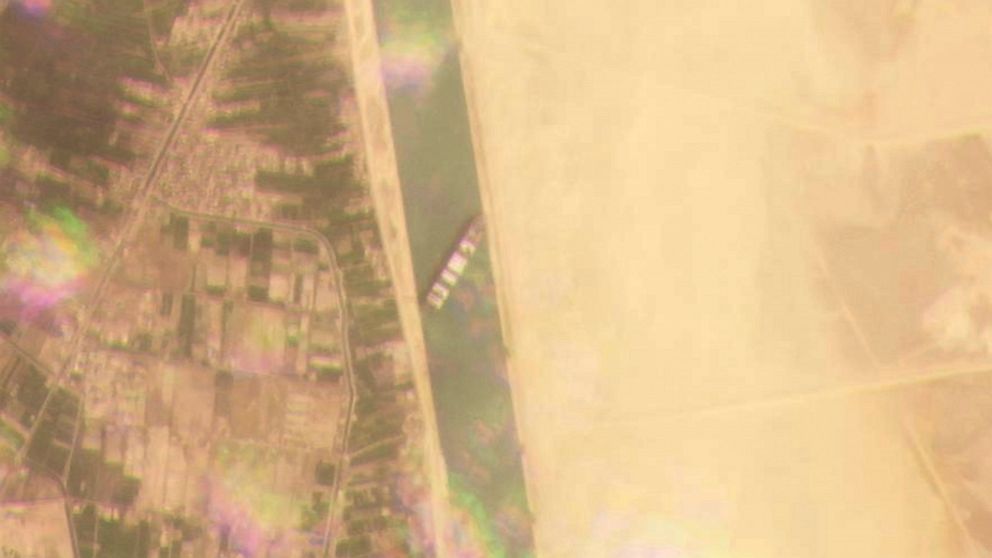 The MV Ever Given, a Panama-flagged ship that carries cargo between Asia and Europe, ran aground Tuesday in the narrow, man-made canal dividing continental Africa from the Sinai Peninsula. Images showed the ship’s bow was touching the eastern wall, while its stern looked lodged against the western wall.