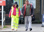 Well-built visitors in trainers, hard hats and ill-fitting high-vis jackets are seen outside a gym