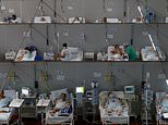 Patients infected with Covid 19 in a field hospital set up at a gym in Santo Andre, Sao Paulo, as it emerges nearly 4,000 people are dying every day