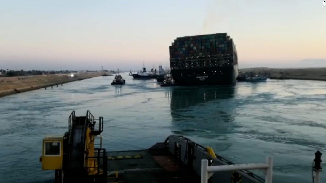 Video footage from the rescue operation show the stern, the back of the ship, has dislodged and is facing the canal after significant movement. The status of the bow, or the front of the ship, has not yet been confirmed.