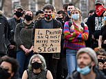 Demonstrators are seen holding placards during a ‘Kill the Bill’ protest against the Government’s Police, Crime, Sentencing and Courts Bill in Bristol this evening