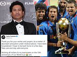 Tendulkar (here celebrating with Gautam Gambhir) wished all Indians well on the 10th anniversary of winning the World Cup