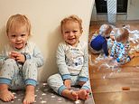 - Twin toddlers Archie and Jacob, two, covered kitchen floor with finger fingers
