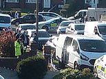 Picutred: Armed officers outside a home in Rowley Regis, West Midlands, where a woman in her 80s was attacked and killed by two escaped dogs. A 43-year-old man has been arrested