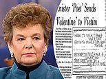 The next month, she received a terrifying Valentine’s message that read: ‘Here’s to you a tender valentine/ Red with blood and tied with twine/ Nothing too much for a valentine/ Gone from here by whim of mind.’