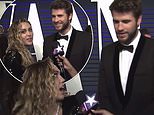 Not a fan: Unearthed red carpet footage from February 2019 shows tension between then-newlyweds Miley Cyrus (left) and Liam Hemsworth (right)
