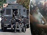 Alleged members of a gang seek refuge on a building roof while running from the police after a shootout left 25 people dead, including a police officer