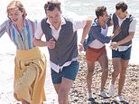 Harry Styles frolics with BOTH his on-screen loves – wife Emma Corrin and gay lover Patrick Hazelwood – while shooting animated scenes on Brighton beach for LGBT drama The Policeman