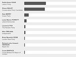 Mr Bailey, who polled a distant second to the Labour incumbent before Thursday’s election, was just 2 per cent behind this evening, with the two on 39 and 37 per cent respectively.