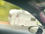 The clip shows the caravan being dragged along after its back tyre had reportedly blown out.