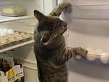 Just chilling! Cola the cat is caught climbing inside fridge after working out how to open the door
