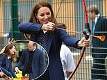 A royal shooting star! Beaming Kate Middleton tries her hand at archery and table tennis while Prince William gets his hands dirty planting at visit to Wolverhampton youth charity