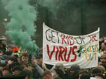 Tensions threaten to boil over between Manchester United fans and police again as hundreds gather near Old Trafford to continue protests against the Glazers… while a Liverpool coach ‘has tyres SLASHED en route to the stadium ahead of the match’
