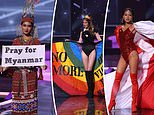 Miss Universe gets political: Beauty queens use national dress round to call for a ‘stop to Asian hate’ and an end to ‘violence and discrimination’ – as the Myanmar hopeful asks for ‘prayers’ for her country