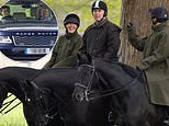 Prince Andrew smiles as he enjoys a horse ride around the grounds of Windsor Castle while Princess Beatrice drives Sarah Ferguson on trip away from estate