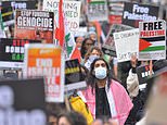 Organisers have urged people to keep moving down the road as numbers continued to swell and dozens of police officers line nearby streets. It comes as thousands of Palestinians have been forced to flee from their homes after a week of sustained conflict.
