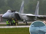 Photo of the F-15 on the runway at St Louis airport shows it missing its canopy after the pilots ejected.