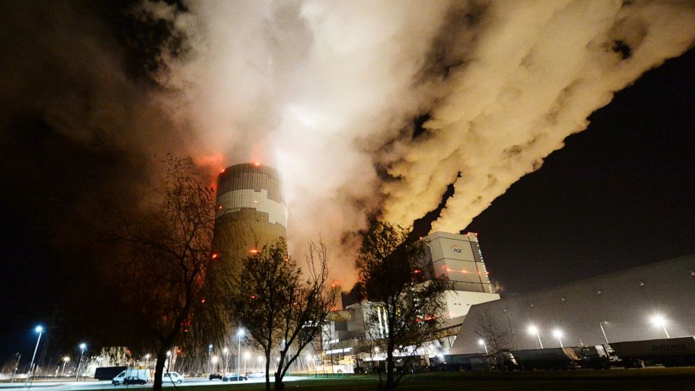 The fire broke out at midday Saturday and sent huge clouds of black smoke over the area, which also includes Poland’s largest lignite power plant.