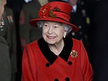 The monarch smiled as she greeted Royal Navy personnel during a visit to HM Naval Base, Portsmouth, dressed stylishly in a vibrant red military style coat and a matching bowler hat, embellished with a stunning floral piece