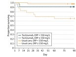 Tocilizumab and standard care had relatively similar survival rates for patients who received less than 150 milligrams per liter of oxygen.