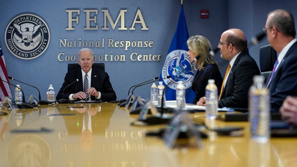 At the end of his visit to FEMA, Biden took a moment to address agency employees and thank them for their efforts in recent months. In addition to the agency’s work dealing with natural disasters, FEMA is playing a central role in the federal government’s effort to distribute COVID-19 vaccines in hard-to-reach areas of the country. The agency in March was also called to help support the processing of the surge of unaccompanied migrant children arriving at the U.S. southern border.