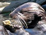 Shuck tactics! Sea otter Uni Sushi shows off her shell-opening skills as she tucks into raw seafood at Oregon Zoo