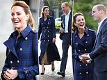 A queen of diplomatic dressing, Kate, 39, sported an £849 Marlborough Trench Coat in Heather Tartan by Holland Cooper - having worn a blazer by the British brand earlier today for a visit to St Andrews