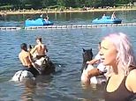 • Horses were taken into the water to the shock of families cooling off in the lake