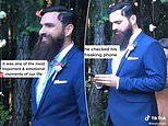 Taylor Loren, from Vancouver, took to TikTok to share a clip from her wedding four years ago, which she said was ‘the most important moment of her life’. Dressed in blue suit and sporting a long beard, her husband Russell, first appears to eagerly await his bride, before quickly reaching into his suit jacket to check any notifications.