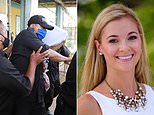 Hartin’s blonde hair is seen as she is surrounded by guards on leaving the prison in Belize